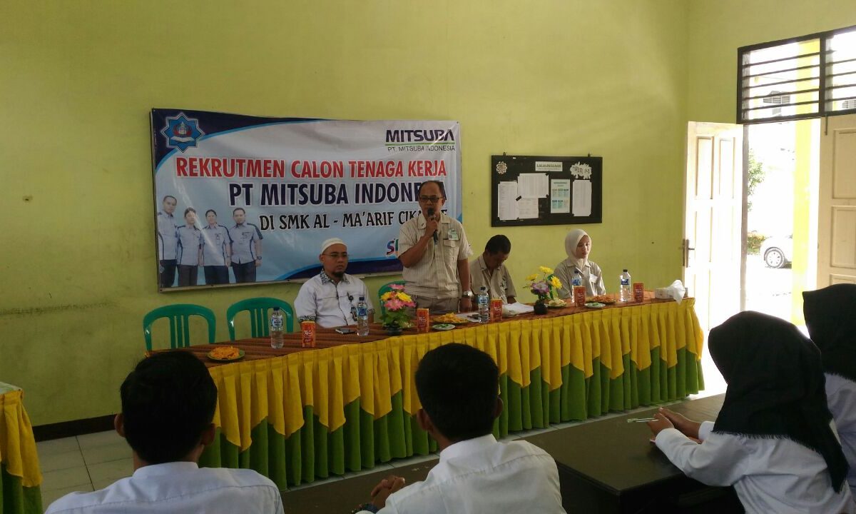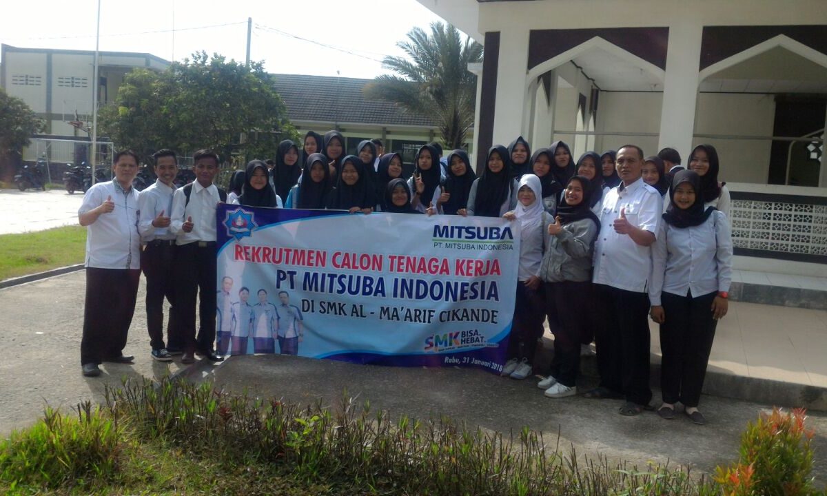 Recruitment PT.Mitsuba Indonesia bertempat di SMKS Al-Ma'arif Cikande Tahun 2023. Jumlah Pendaftar dari SMKS Al-Ma'arif Cikande 40 Peserta. 3 orang lulus untuk penempatan di Kawasan Industri Modern Cikande dan 3 untuk penempatan di kawasan Industri Jatake Tangerang.